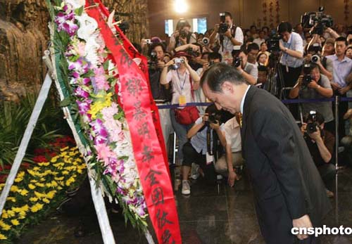 圖:胡錦濤與臺灣新黨“民族之旅”訪問團合影(7月12日 16:42)