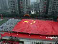 圖:重慶小學生傳遞巨型國旗迎奧運(4月9日19:44)