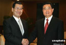 2005年4月29日,胡錦濤與連戰(zhàn)在北京會談,發(fā)布兩岸和平發(fā)展共同愿景。