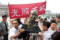 圖:民眾抬雕像送別國學(xué)大師季羨林