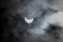 中國各地觀測日食奇觀:連云港上空出現(xiàn)日偏食景觀