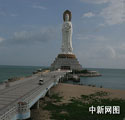 “體驗海南島”——全國網絡媒體海南行采訪團二十八日下午抵達三亞南山,高大莊嚴的白衣觀音造像讓人油然生敬……