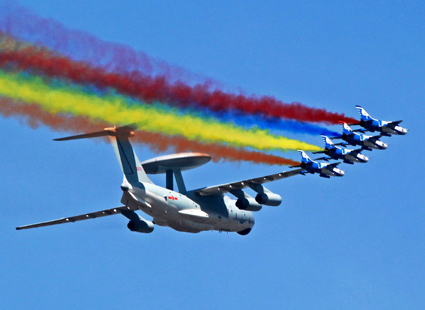 11月上旬,為慶祝人民空軍成立60周年,空軍將安排空軍八一飛行表演隊和空軍跳傘運動大隊向社會進行飛行和跳傘表演。八一飛行表演隊正加緊訓練迎接慶典……