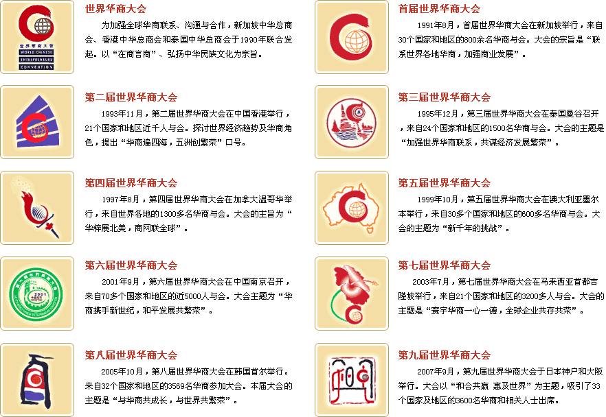 | 第十屆世界華商大會將于2009年11月19-22日在菲律賓首都馬尼拉舉行,主題定為“加強華商聯系·促進世界繁榮 ”。在這四天的大會中,世界各地華商將探討加強彼此之間合作的議題。 在當今全球經濟籠罩在金融危機之下,華商之間的互動與合作,顯得尤為重要。第十屆世界華商大會將作為深化交流、掌握脈動契機的平臺,大家集思廣益,團結一致,共克時艱。 |