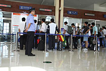 • 圖:伊春機場乘客在辦理登機手續