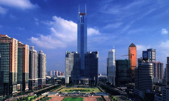 中信廣場位于廣州市商業(yè)、金融業(yè)繁華的天河北路,占地2.3萬平方米,總建筑面積29萬平方米,由一幢80層的主樓和兩幢38層的副樓組成,1997年建成時為當時中國的最高建筑,現(xiàn)在仍是華南地區(qū)第一高樓,也是世界上最高的混凝土大廈,其抗震能力比“9·11”事件中被撞毀的紐約世貿(mào)中心大廈強得多。它面向天河體育中心,背后是廣州火車東站和廣州地鐵總站,地理位置優(yōu)越,擁有一流的辦公商住環(huán)境,落成不久即身價百倍,成為廣州市屈指可數(shù)的黃金商業(yè)樓盤。