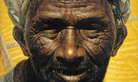 羅中立《父親》一畫曾獲“中國青年美展”一等獎,其畫面具有一種悲劇性的震撼力,表現了生活在貧困中的老農形象;老農開裂的嘴唇、滿臉的皺紋以及手中粗劣的碗等等寫實的描繪,消除了觀賞者與作品之間的隔膜,畫家藉此來對傳統文化和民族進行反思。