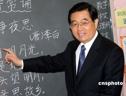 ·胡錦濤給日本中華學校小學生講解唐詩《靜夜思》(5月9日 21:46)