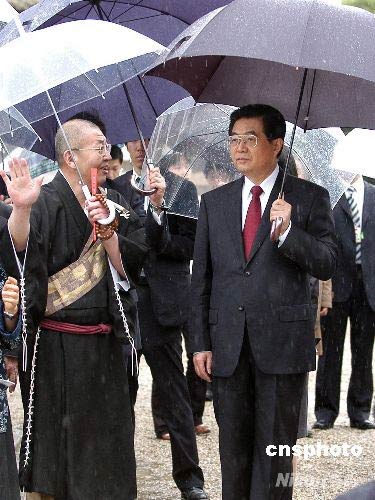 ·圖:胡錦濤冒雨參觀日本法隆寺(5月10日 15:32)