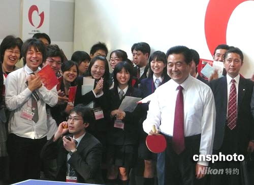 ·圖:胡錦濤在早稻田大學打乒乓 與日本青年交流 (5月8日 18:27)