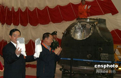 ·圖:“神七”載人飛船返回艙在北京舉行開(kāi)艙儀式(10月1日 15:36)