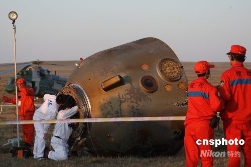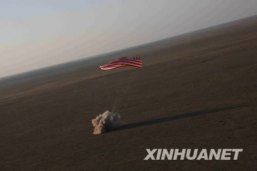 ·圖:神七飛船返回艙著陸瞬間(9月28日 19:16)