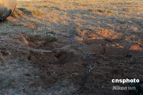 ·圖:神七返回艙底部反推點(diǎn)火在地面形成的四個(gè)坑(9月29日 19:36)