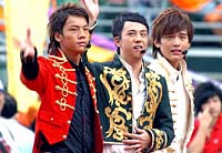 圖為音樂組合Boy`Z為大會演唱流行歌曲