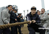 "深圳"號驅逐艦官兵在日參加拔河比賽