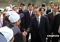 溫家寶總理在京都嵐山與中國游客交談