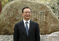 溫家寶在京都嵐山參觀周恩來詩碑