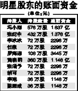 自2009年10月30日在創(chuàng)業(yè)板上市以來,華誼兄弟上市后也足歲了,并于上周末“解禁”(按規(guī)定,股東在公司上市12個(gè)月之后才能出售股票)。由于其背后隱藏著馮小剛、黃曉明、李冰冰、羅海瓊、任泉等多位明星股東,而如今的股價(jià)已漲至當(dāng)初他們買原始股時(shí)價(jià)格的幾十倍,因此這些明星持股人是否會(huì)拋售股票套現(xiàn),成了大家關(guān)注的焦點(diǎn)。昨日是“解禁”后的首個(gè)交易日,記者了解后發(fā)現(xiàn),不少明星都未著急套現(xiàn)。