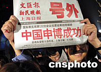 上海獲得2010年世界博覽會主辦權