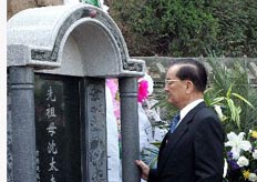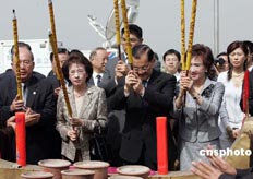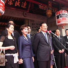 連戰一行進入祠堂后,首先是喝甜茶儀式:由連氏宗親用紅盤子端甜茶給臺灣親人每人象征性喝一口,之后,祭祖儀式便在民間“八音”樂隊演奏的“追思曲”的伴奏下肅穆地進行....<全文>