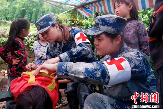 為駐地民眾處理傷情。易開(kāi)紅 攝