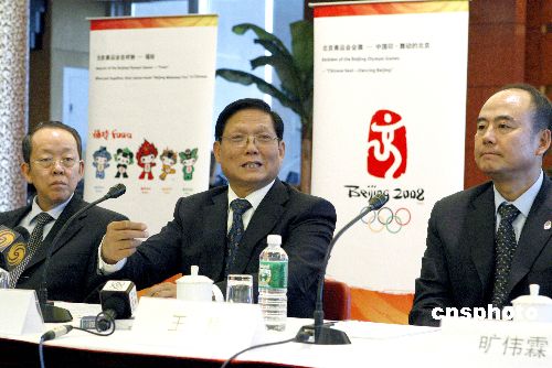 劉淇在紐約向記者介紹北京08年奧運會籌備情況
