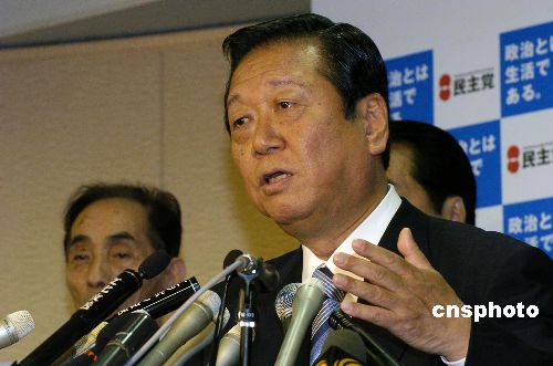 圖:日本第一在野黨黨魁小澤一郎收回辭呈