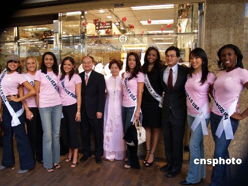 圖:參選美國小姐佳麗在洛杉磯走訪華人商家