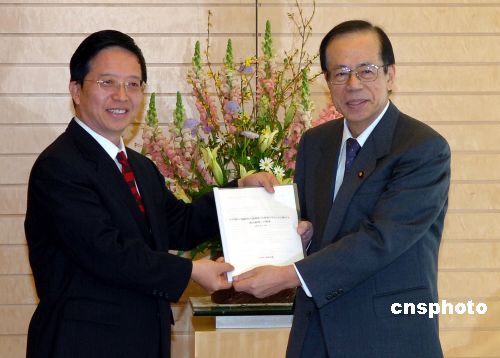 12月27日上午,即將啟程訪華的日本首相福田康夫在首相官邸會見了在日華人團體“日本華人教授會”的代表,在會見中,華人教授會向福田首相遞交了關(guān)于發(fā)展中日戰(zhàn)略互惠關(guān)系的五點建議。中新社發(fā) 滕劍峰 攝
