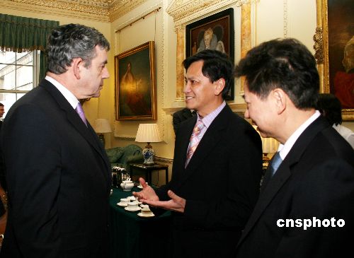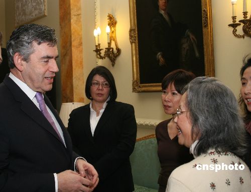 當?shù)貢r間1月14日下午,即將訪華的英國首相布朗在唐寧街十號會見旅英華人華僑、中資機構(gòu)負責(zé)人、留學(xué)生等華人杰出代表。中新社發(fā) 李鵬 攝