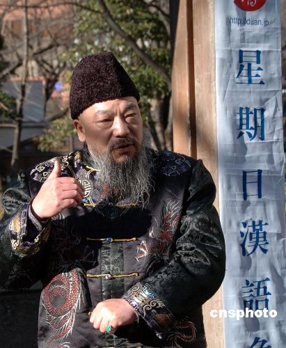 1月27日,東京星期日漢語角舉行第24次交流會,邀請正在日本訪問的中國著名國畫大師安云霽教授進(jìn)行演講和座談。安云霽不僅介紹了中國的文化藝術(shù),還就中日文化交流、北京奧運(yùn)會等話題進(jìn)行了深入淺出的演講。安云霽的滿口京腔以及充滿中華民族色彩的服裝,吸引了參加漢語角的日本朋友,多次贏得熱烈的鐘掌聲。中新社發(fā) 段躍中 攝