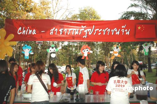 戊子鼠年新春,對泰國孔敬大學(xué)孔子學(xué)院的師生們來說,是個忙碌而愉快的春節(jié)。大鼠年大年初二,泰國孔敬大學(xué)孔子學(xué)院滿校園刮的是“孔敬國際食品和文化節(jié)—中國西北風(fēng)”。一年一度的食品節(jié)上,孔子學(xué)院的中國食品再次大放光彩。今年推出的是西北民間小吃——“春餅”、“雪里紅”和“雞蛋果”。中新社發(fā) 顧時宏 攝