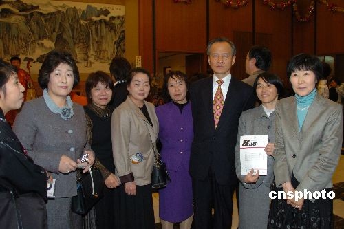 3月7日晚,中國駐日使館在東京舉行招待會慶祝三八國際勞動婦女節,中國駐日大使崔天凱及夫人倪培君、日本首相夫人福田貴代子、少子化對策專任大臣上川陽子(女)等日本各界及華人華僑婦女代表近300人參加。中新社發 段躍中 攝