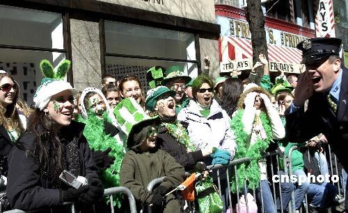 3月17日,美國紐約曼哈頓舉行了一年一度的圣帕特里克節(jié)大游行。中新社發(fā) 鄧悅 攝
