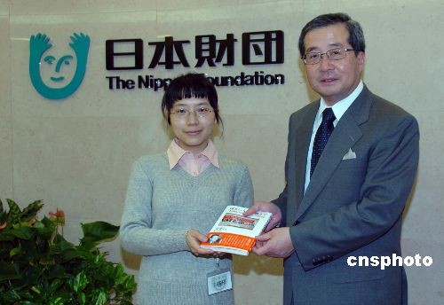 應主辦方日本僑報社日中交流研究所的邀請,第三屆中國人日語作文比賽最優(yōu)秀獎得主——暨南大學日語系學生陳歆馨3月24日開始訪問日本。25日下午,陳歆馨在日本僑報社社長張景子的陪同下,拜訪了作文比賽特別贊助者日本財團。日本財團理事長尾形武壽鼓勵陳歆馨再接再厲,為中日友好作貢獻。據(jù)介紹,陳歆馨是在1400多名名參賽者中脫穎而出榮獲最優(yōu)秀獎的。中新社發(fā) 段躍中 攝