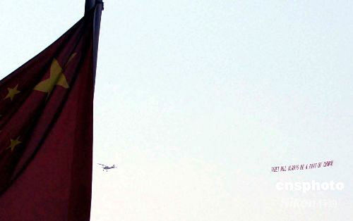 4月22日,紐約華人華僑租用一架小型飛機(jī)飛越曼哈頓,打出“西藏永遠(yuǎn)是中國(guó)的一部分”的橫幅。中新社發(fā) 龔文謨 攝