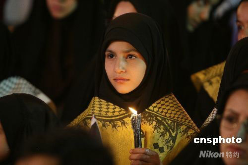 5月15日晚,伊朗民眾聚集在首都德黑蘭巴勒斯坦廣場舉行紀念巴勒斯坦第60個“災難日”活動。以色列1948年5月14日宣布建國。次日,阿拉伯國家與以色列爆發(fā)第一次中東戰(zhàn)爭,大批巴勒斯坦民眾為躲避戰(zhàn)爭而逃亡。巴勒斯坦人因而把5月15日命名為民族“災難日”,今年是第60周年。中新社發(fā) 原丁 攝