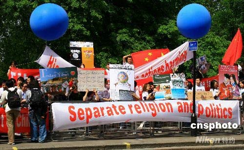 在英華人青年及留學(xué)生舉行示威抗議達(dá)賴?yán)?/div>