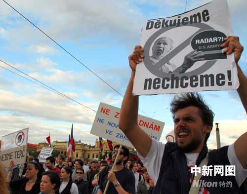 捷克民眾抗議與美國(guó)簽署反導(dǎo)雷達(dá)基地協(xié)定