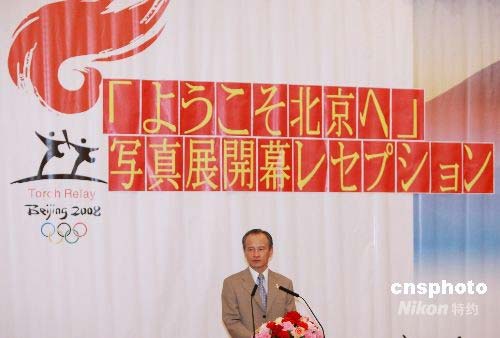 7月23日中午,由中國(guó)駐日使館主辦的《北京歡迎你》圖片展在東京開(kāi)幕。此次共展出94幅奧運(yùn)題材攝影作品,從古都風(fēng)貌、場(chǎng)館建設(shè)、喜迎奧運(yùn)等多個(gè)側(cè)面全面展示了中國(guó)為舉辦一屆成功奧運(yùn)會(huì)所取得的杰出成就。圖為中國(guó)駐日大使崔天凱在圖片展開(kāi)幕式上致詞。中新社發(fā) 朱沿華 攝