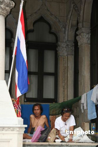 盡管泰國憲法法院九月九日已經判決總理沙瑪因主持電視節目違背憲法無資格當總理,但占據總理府的民盟示威者依然沒有離去。在總理府的過道上走廊里,隨處可見半躺半睡的示威者,或在看直播演講的電視,或上網,或隨音樂唱歌跳舞,千姿百態。中新社發 顧時宏 攝