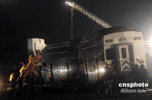 美國洛杉磯近郊當?shù)貢r間九月十二日下午發(fā)生一起客運列車與貨運列車相撞的嚴重事故,至少造成十人死亡,一百三十五人受傷。當晚,救援人員仍在現(xiàn)場搜救,警方估計死亡人數(shù)很可能還會上升。中新社發(fā) 張煒 攝