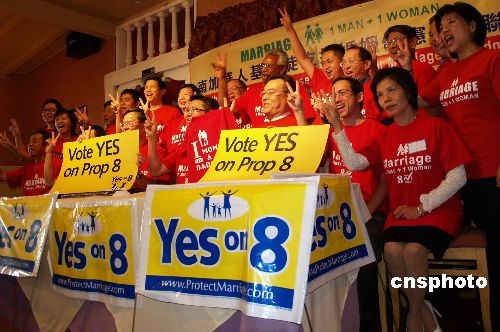 當地時間10月16日,美國南加州華人基督徒支持加州婚姻修憲提案,倡導一男一女婚姻制。中新社發 盧威 攝
