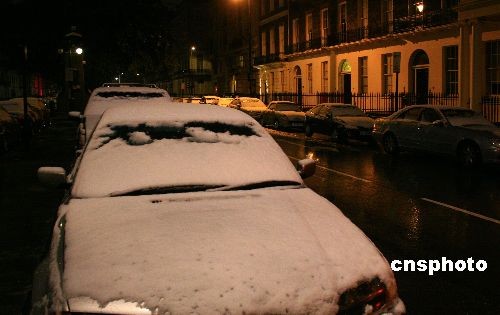 當(dāng)?shù)貢r(shí)間10月28日晚,英國包括首都倫敦在內(nèi)的英格蘭中部極不尋常地早早下起今冬的第一場(chǎng)雪,英國大部分地區(qū)氣溫也隨之驟降。圖為28日深夜在倫敦市區(qū),中國駐英使館附近街區(qū)的汽車被大雪覆蓋。中新社發(fā) 李鵬 攝