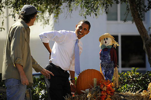 10月30日,在美國佛羅里達州的薩拉索塔,選戰中四處奔走的美國民主黨總統候選人奧巴馬忙里偷閑,來到當地的一家南瓜園摘南瓜,享受片刻悠閑。