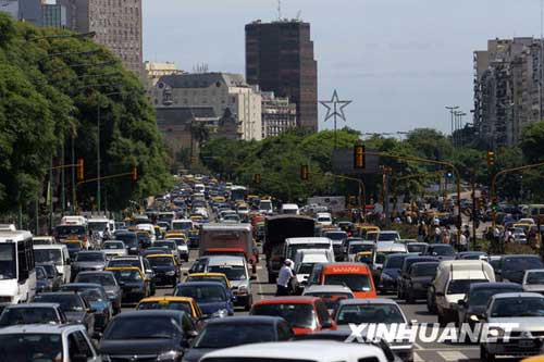 12月12日,在阿根廷首都布宜諾斯艾利斯,眾多車輛擁堵在路上。