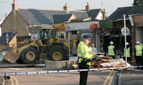 據英國媒體報道,近日,英國白金漢郡的一個村莊發生一起銀行搶劫案,匪徒駕駛建筑挖掘機將一家銀行外的自動柜員機鏟走,但隨后挖掘機失控,將銀行隔壁郵局和餐館的墻面撞毀。目前案件正在進一步調查中。