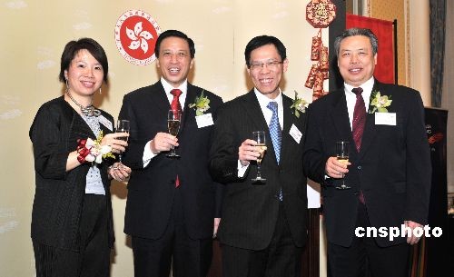 當地時間2月4日,香港駐紐約經貿辦事處在華爾道夫酒店舉行新春招待會,中國常駐聯合國代表張業遂大使,中國駐紐約總領事彭克玉等四百多位來賓出席了招待會,香港特區駐美國總經貿專員唐智強發表講話,香港駐紐約經貿辦事處處長陳美嘉致新春賀詞。中新社發 龔文謨 攝