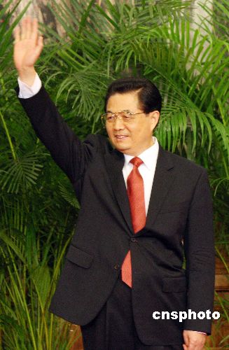 十月二十二日,中共十七屆一中全會在北京人民大會堂召開,選舉產生新一屆中共中央政治局常委。胡錦濤再次當選為中共中央總書記。中新社發 毛建軍 攝