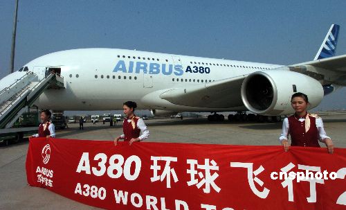 圖:空客A380環(huán)球飛行之旅抵達(dá)廣州